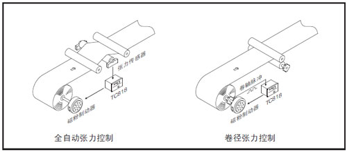TC818可以設置為全自動張力控制器或卷徑張力控制器,當功能選擇[29][1]設置為自動張力控制時,TC818為全自動張力拉制器,需安裝張力傳感器,組成閉環(huán)控制系統(tǒng)。當功能選擇[29]設置為卷徑張力控制時,TC818為卷徑張力控制器,只需安裝接近開關(guān)/編碼器對料卷半徑進行測量,控制器根據(jù)卷徑張力控制。