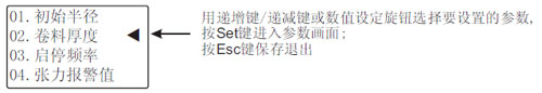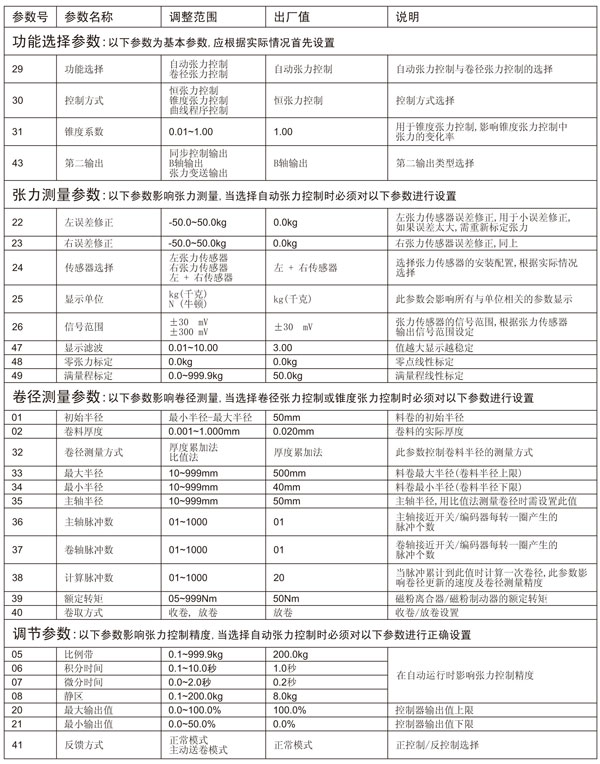 為了使控制器能正確測量卷料張力,必須對與張力測量相關(guān)的參數(shù)進行正確的設置: